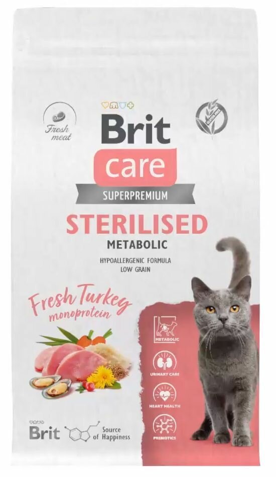 Корм для кошек Сухой корм Brit Care Cat Sterilised Metabolic для стерилизованных кошек, с индейкой, улучшенный обмен веществ 1.5 кг