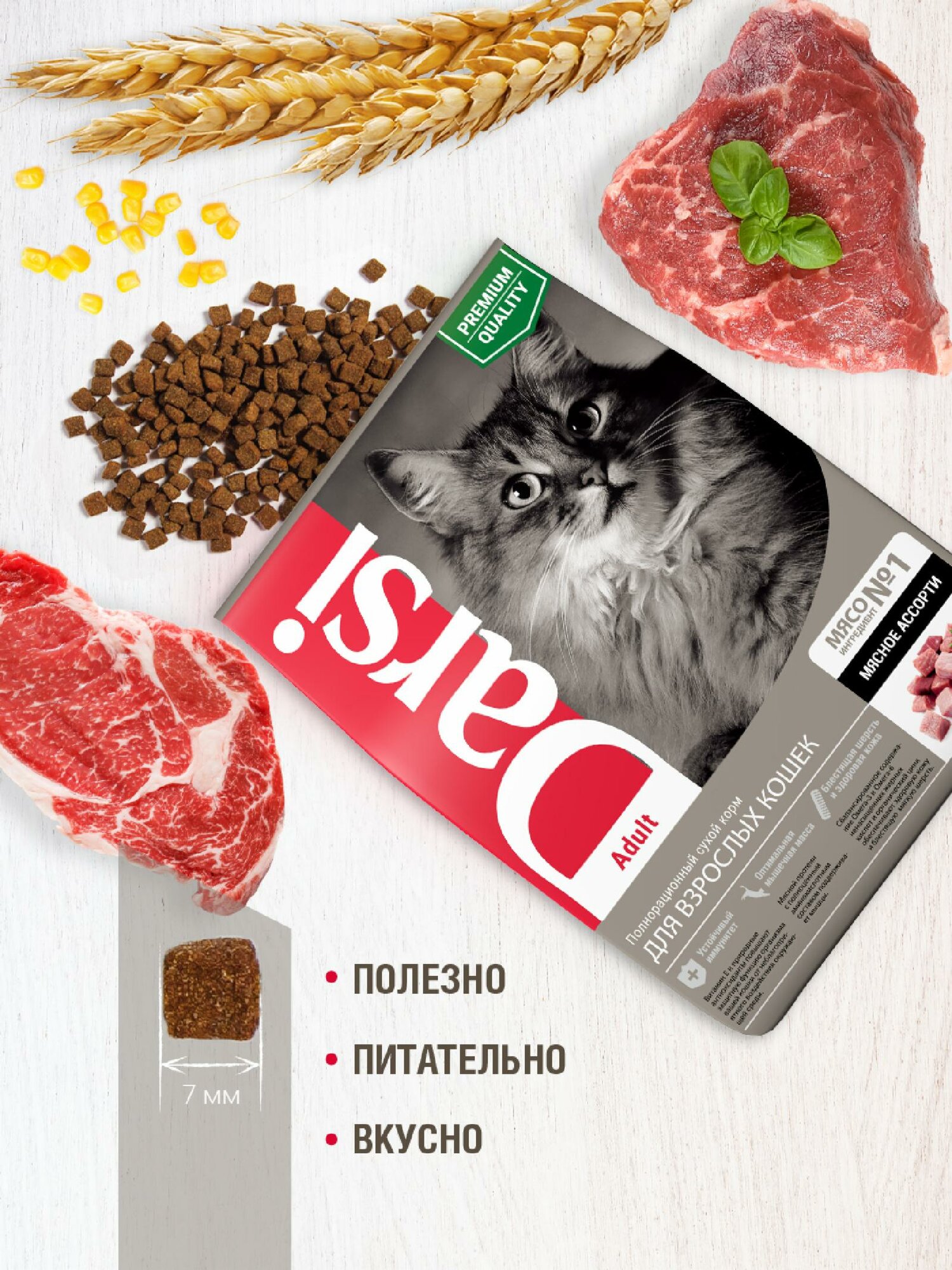 Darsi Adult сухой корм для кошек Мясное ассорти, 0,3кг, 1шт