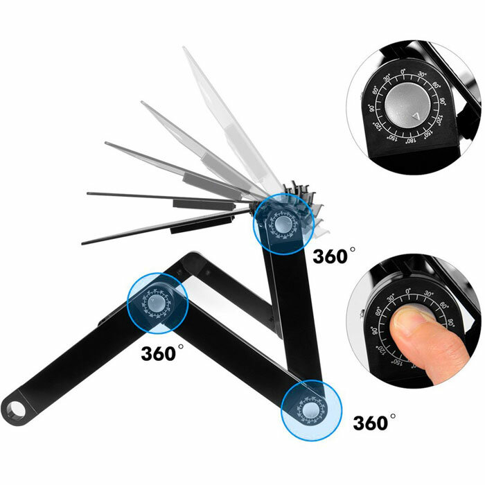 Лучшие цены. Crown CMLS-115В - портативный столик-трансформер с активным охлаждением для ноутбука с диагональю экрана до 17". Столик оснащен алюминиевой столешницей с регулируемым углом наклона и двумя встроенными 80 мм вентиляторами, способствующими эффективному охлаждению компьютера. Механизм раскладывания, состоящий из трех секций, соединенных между собой вращающимися на 360 градусов шарнирами, позволяет свободно регулировать высоту стола и угол наклона. Питание вентиляторов осуществляется от USB-порта компьютера. Магазины в вашем городе.