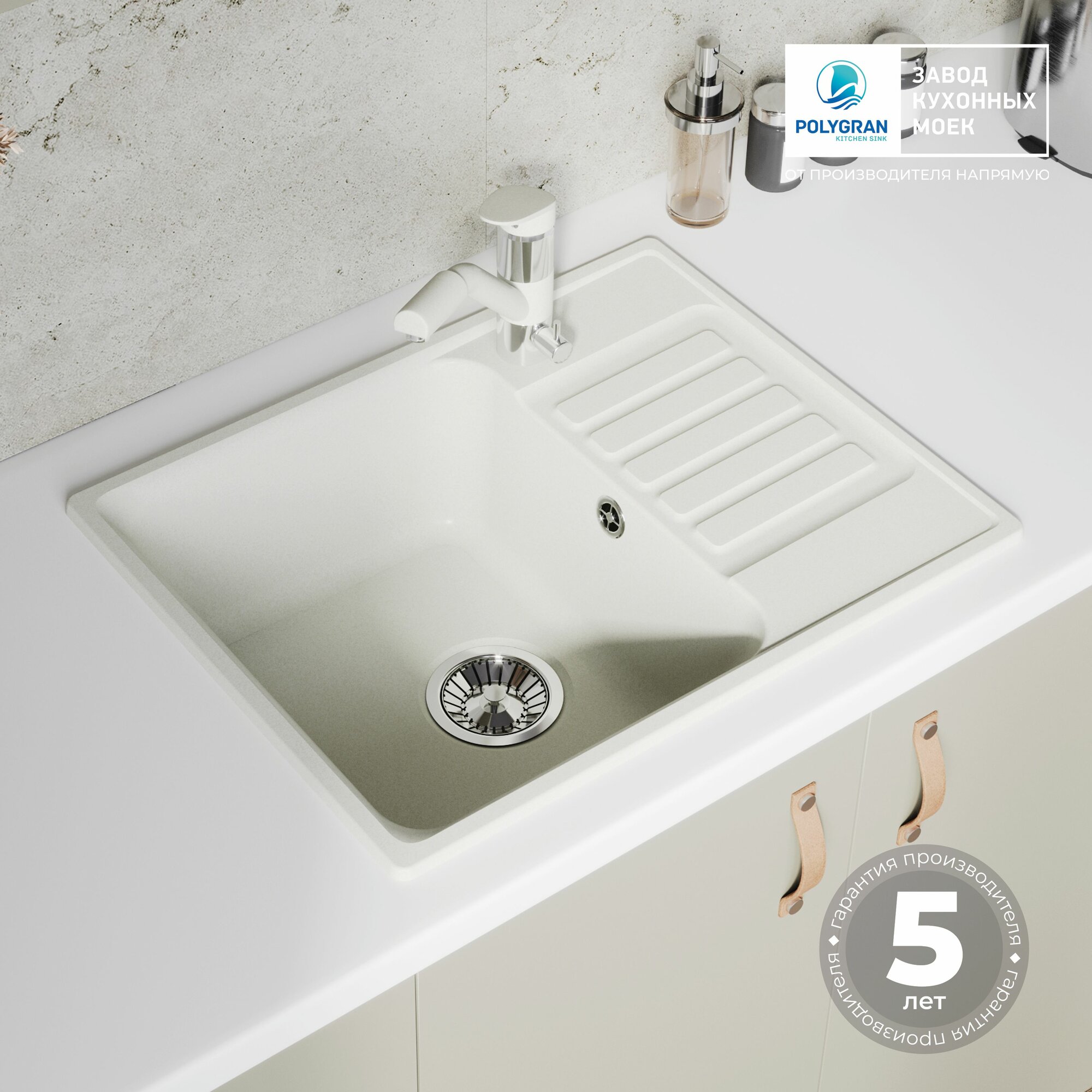 Кухонные мойки Кухонная мойка кварцевая QUARTZBOND BOND-600 белая (Туман)