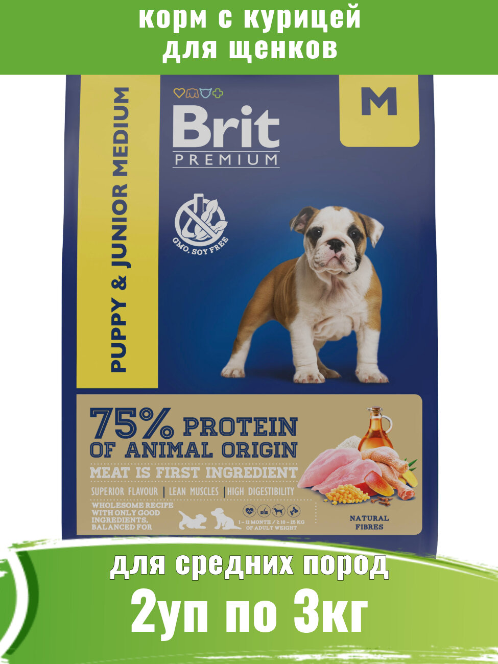 Brit Premium Dog Puppy and Junior Medium 2шт по 3кг курица сухой для щенков и молодых собак