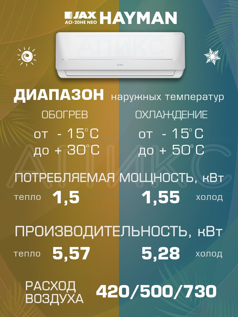 Кондиционеры Сплит-система JAX HAYMAN ACI-20HE NEO, инверторная, Wi-Fi, A++, 20BTU, белый