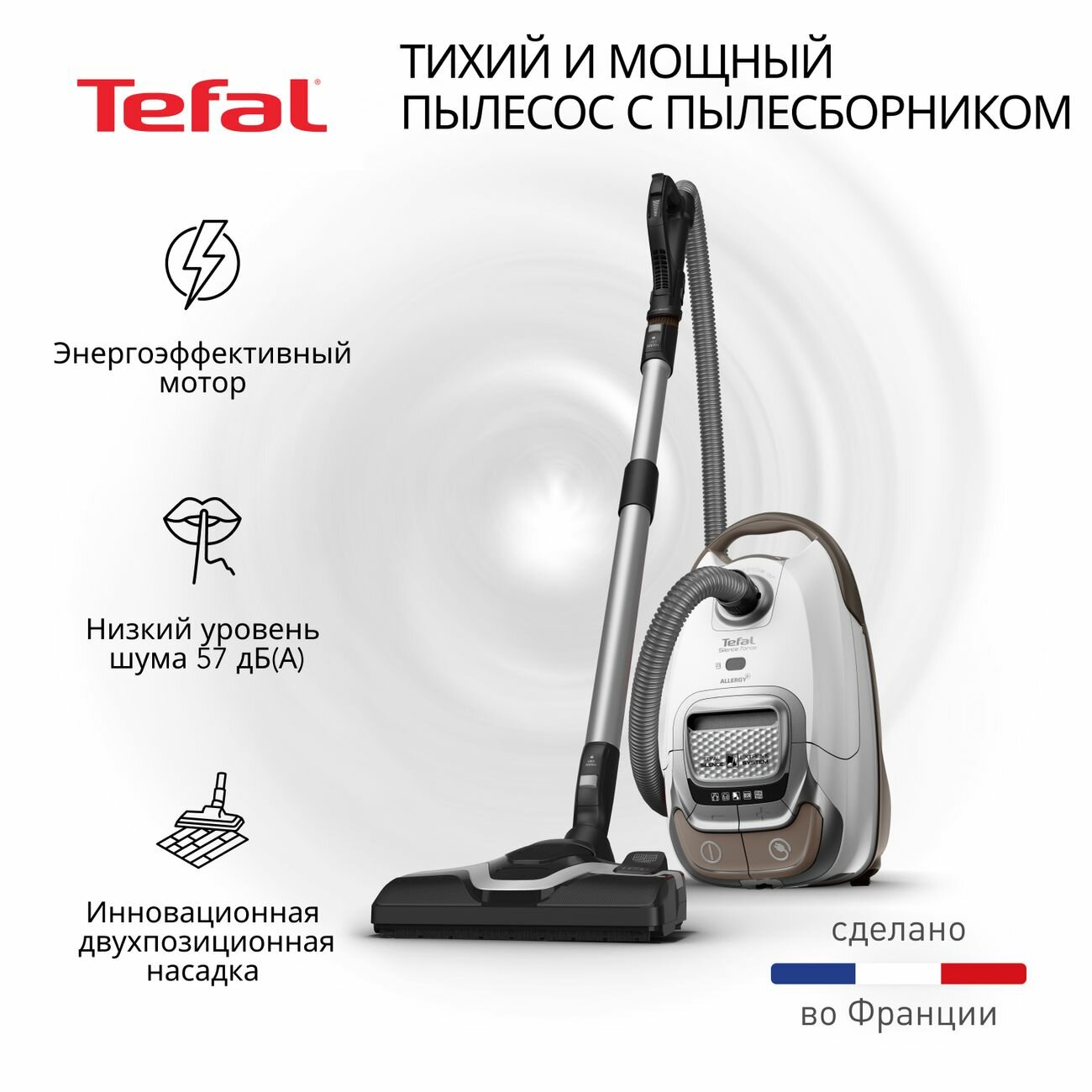 Пылесосы Пылесос с пылесборником Tefal Silence Force Allergy+ TW7487EA, 400 Вт, ручка для переноски