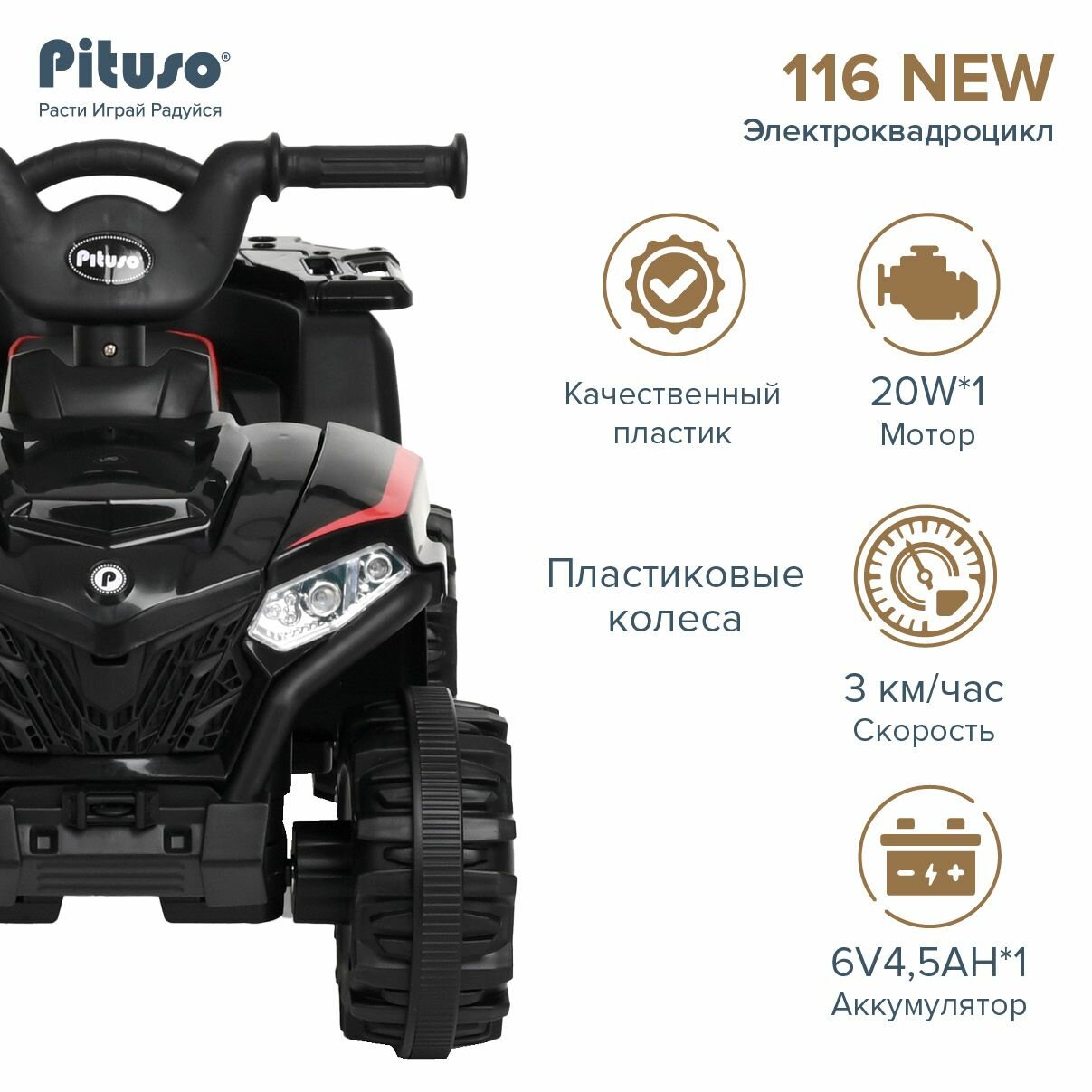 Детские электромобили Электромобиль детский, квадроцикл Pituso 116-NEW, батарея 6V/4.5Ah, мотор 20W*1 Black/Черный машина для детей на аккумуляторе, свет, звук черный
