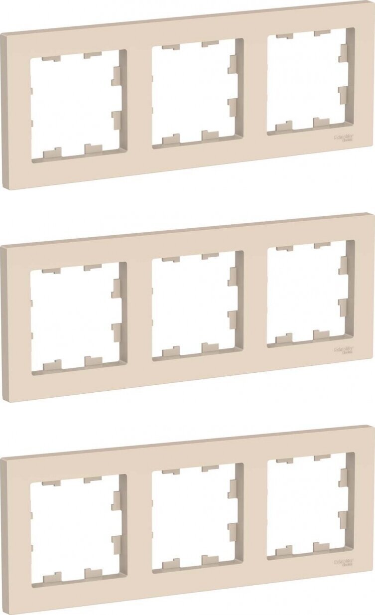 Розетки Рамка Schneider Electric AtlasDesign трехместная универсальная бежевая (комплект из 3 шт.)