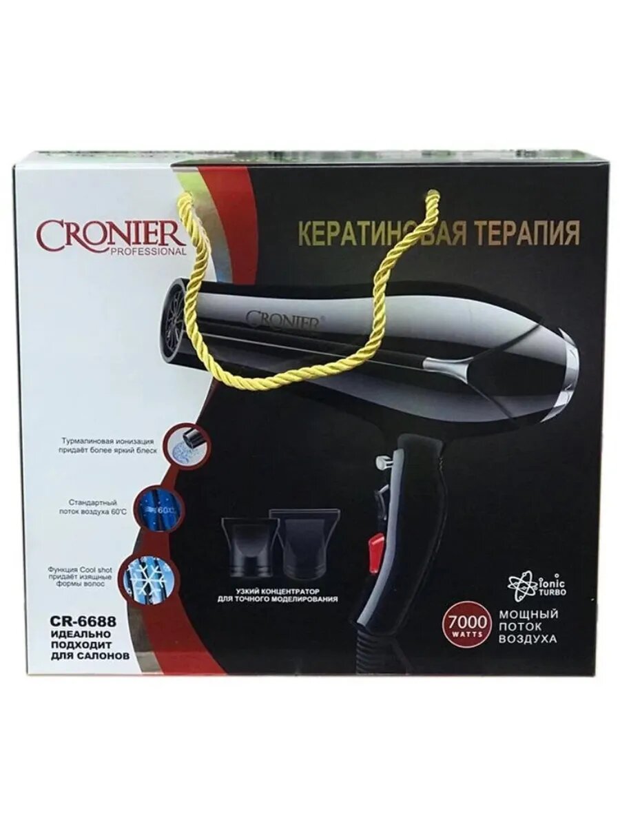 Профессиональный фен для волос Cronier CR-6688, 7000 Вт, с насадками и ионизацией, черный
