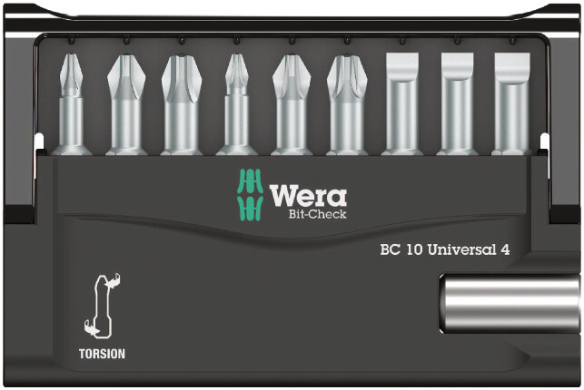 Биты / торцевые головки Bit-Check 10 Universal 4 набор бит торсионных с битодержателем, 10 пр, 1/4" C6.3 Wera WE-056159