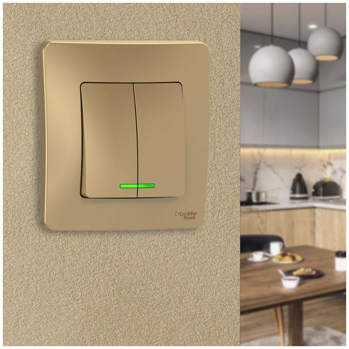Выключатель двухклавишный с подсветкой, бежевый, 10А, 250B, Systeme Electric Blanca (комплект 5шт)