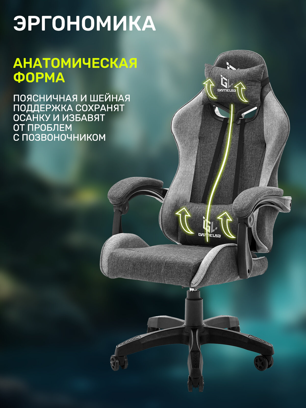 Кресло компьютерное игровое GAMELAB TETRA, Breeze Black-Green 16 990 ₽ Подробнее