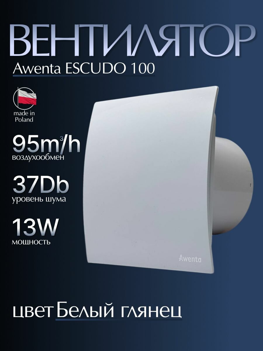 Вытяжные вентиляторы Вентилятор вытяжной Awenta RM WEB 100 ESCUDO двигатель на шарикоподшипнике воздухообмен 95м3/ч 13 Вт цвет Белый глянец в туалет ванную кухню