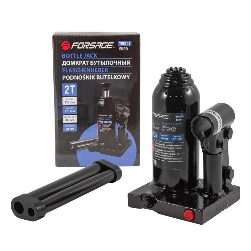 Домкрат бутылочный 2 т, с клапаном + доп. ремкомплект (h min 181 мм, h max 345 мм), FORSAGE FT90204 (1 шт.)