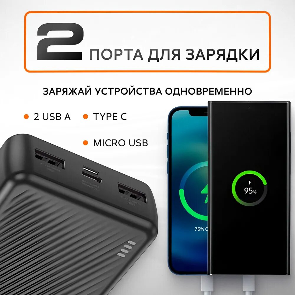 Powerbank Повербанк 20000mah с быстрой зарядкой BOROFONE BJ55A черный powerbank внешний аккумулятор для телефона