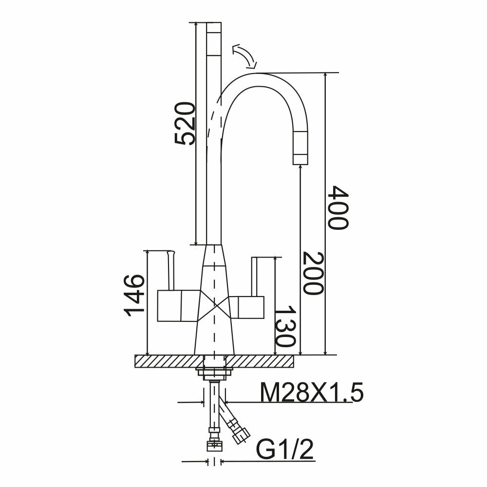 Смеситель для кухни с подключением фильтра и гибким изливом