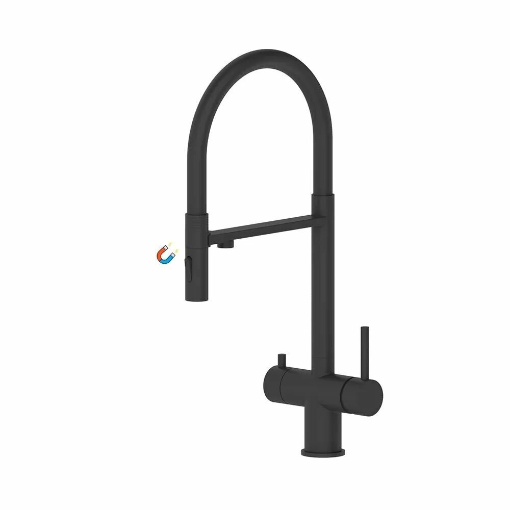 Смеситель для кухни с гибким изливом и под фильтр ViEiR черный