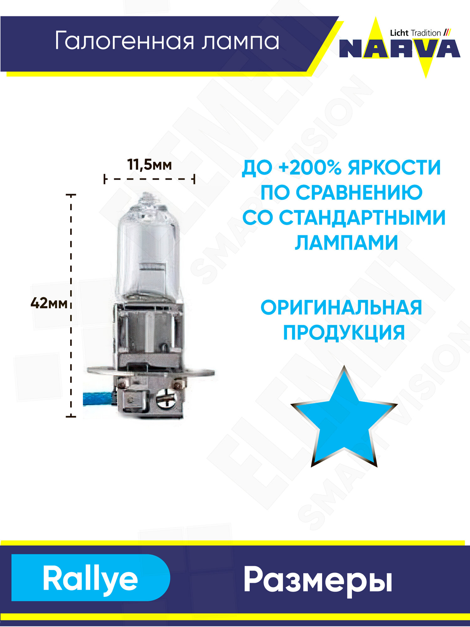Галогенные лампы и наборы головного света для H3 12V-130W (PK22s) Rally - тип NARVA 48381