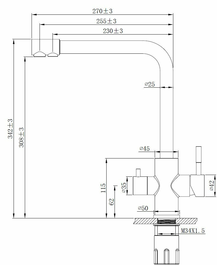 Смеситель для кухни esko r-излив с подключением к фильтру k24