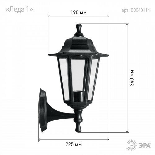 Светильник садово-парковый ЭРА НБУ 06-60-001 Леда1 настенный шестигранный черный Е27 арт. Б0048114 (1 шт.)