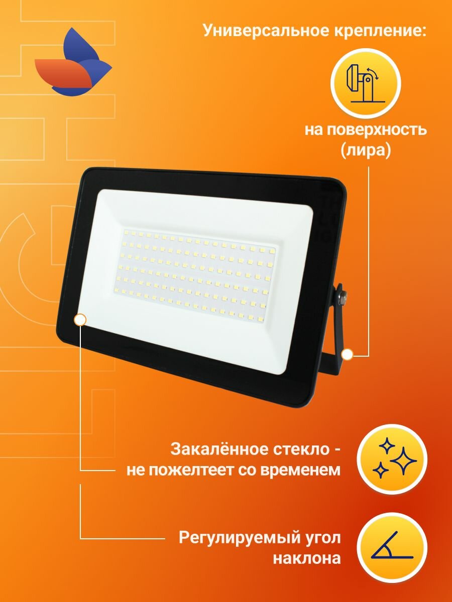 Прожектор светодиодный уличный LED RSV / Светильник настенный и накладной 8000 Лм, 100 Вт, IP65, черный, уличное освещение, фонарь, RSV-SFL-3-100W-6500K-IP65 1 210 ₽ Подробнее