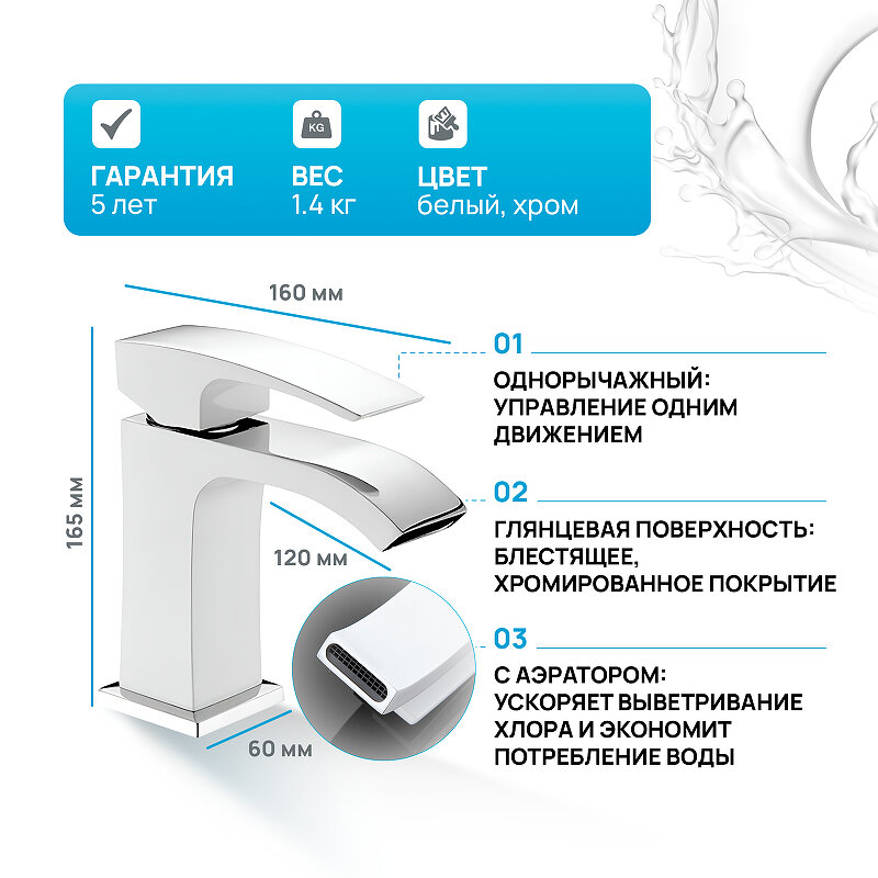 Смеситель для раковины Gappo G1007-11 хром 13 536 ₽ Подробнее