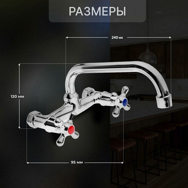 Смеситель для кухни ZEIN Z2485, настенный, излив 20 см, кран-букса латунь 1/2", хром