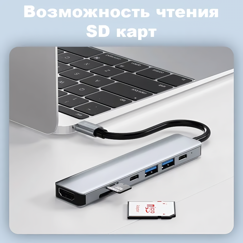 Подставки для ноутбуков HUB Type C для Macbook / USB разветвитель / HDMI 4K адаптер / USB C + USB 3,0 + SD + TF