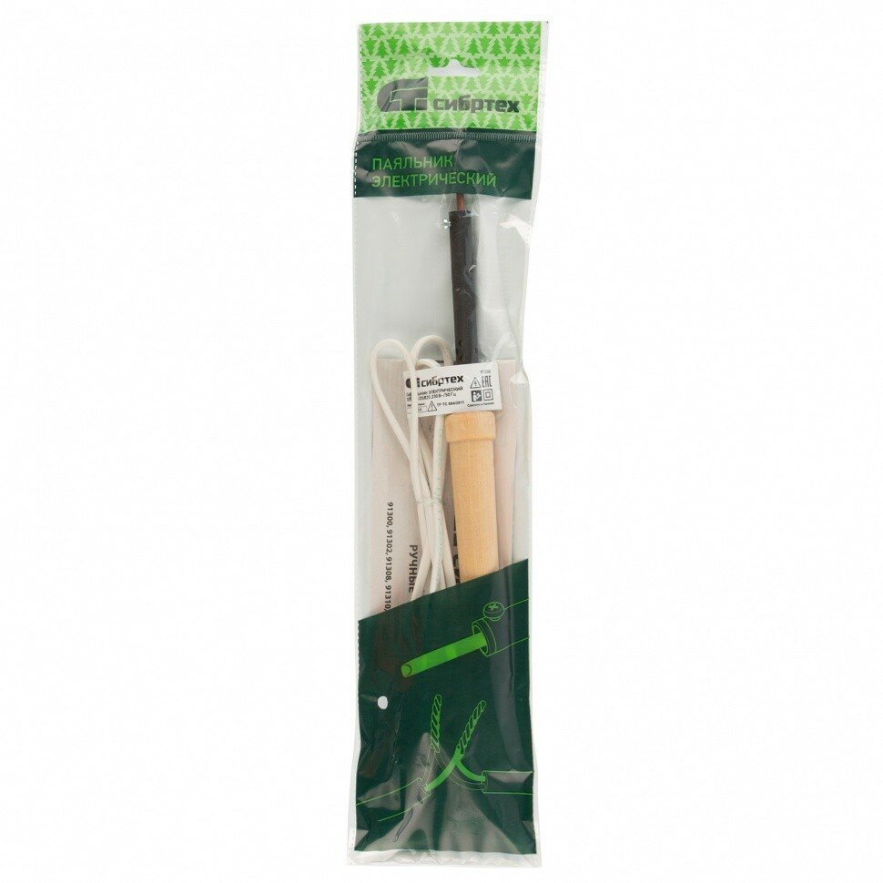 Паяльник электрический Сибртех ЭПСН-25/220 деревянная ручка 91300