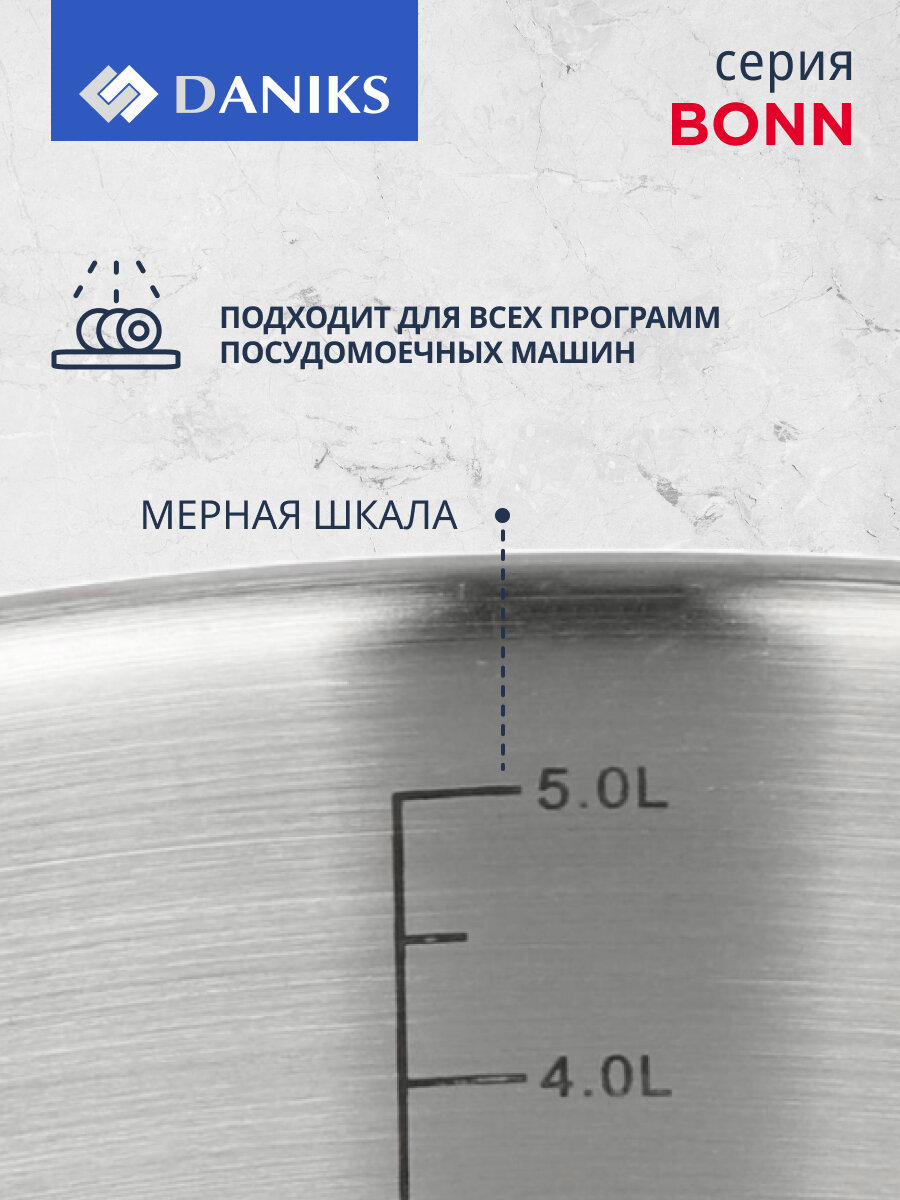 Кастрюля нерж, 5.8 л, с крыш, Daniks, Бонн, GS-01319-24CA, индукц