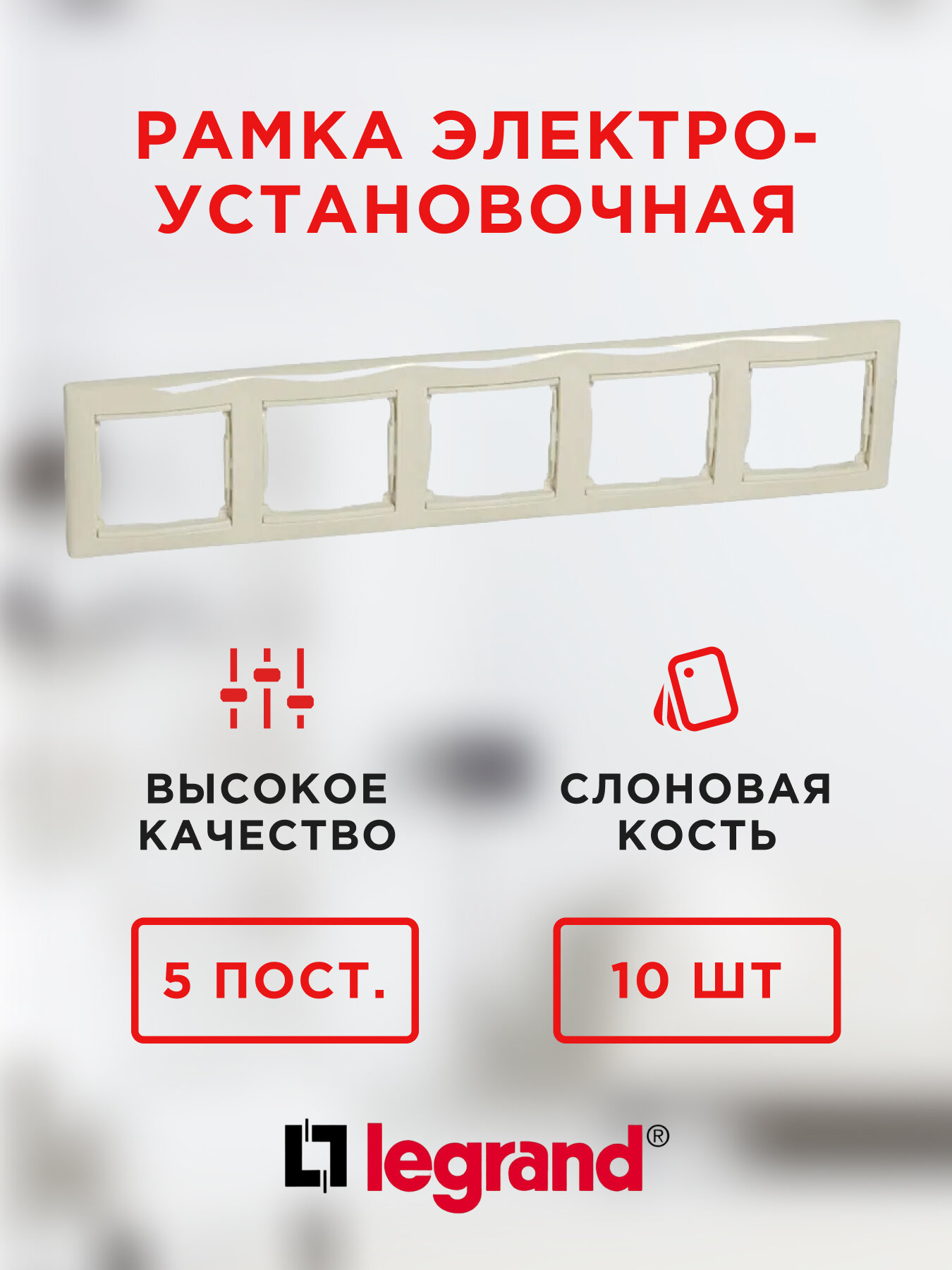 Рамки для розеток и выключателей Рамка электроустановочная Legrand Valena 5 пост, цвет слоновая кость (774355) 10 шт