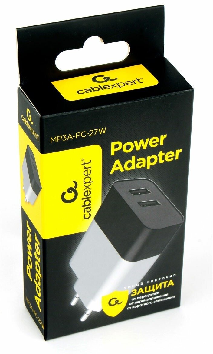 Адаптер питания сетевой Gembird Mp3a-pc-27w 2*USB с защитой от короткого замыкания, перегрузки и п .