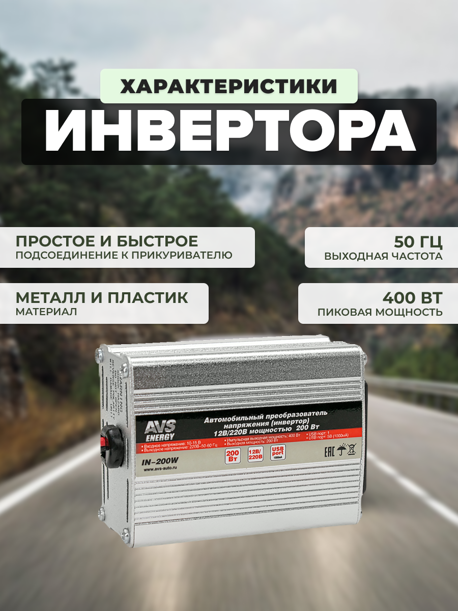 Инвертор AVS IN-200W серебристый
