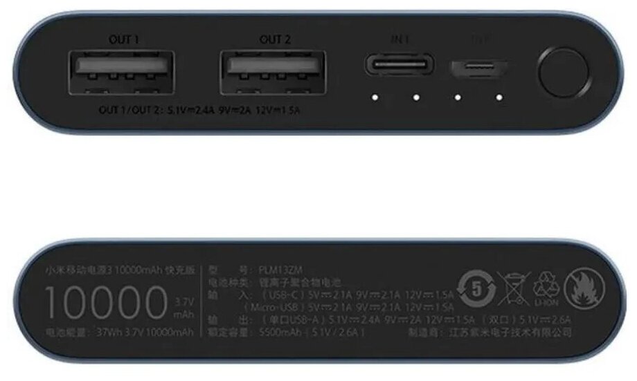 Внешний аккумулятор Xiaomi Mi Power Bank 3 10000 mAh, черный, PB100DZM