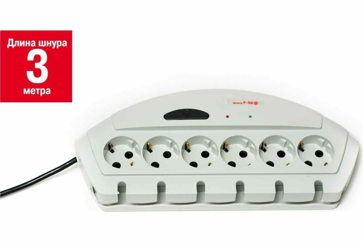 Сетевой фильтр / удлинитель Сетевой фильтр VEKTOR f-50е светло-серый 3м + защита от 380 v 15789
