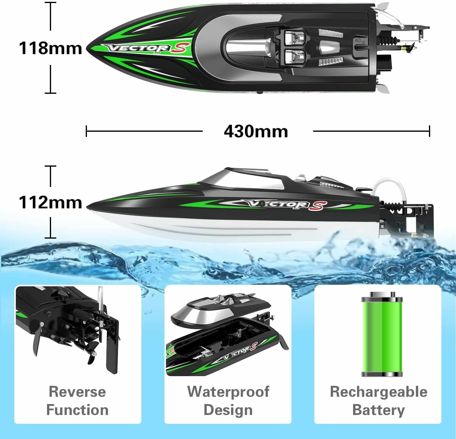 Радиоуправляемый катер Volantex RC Vector XS зеленый 2.4G RTR - EXA79504RG
