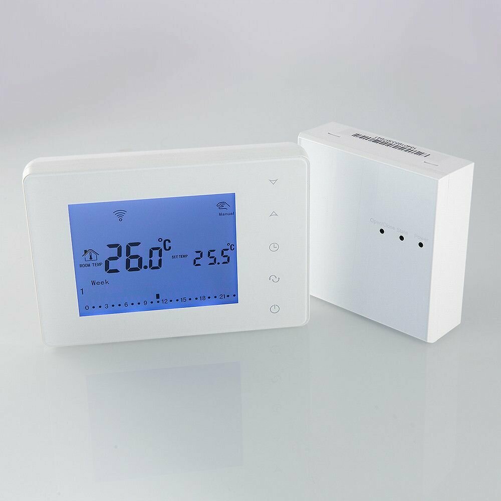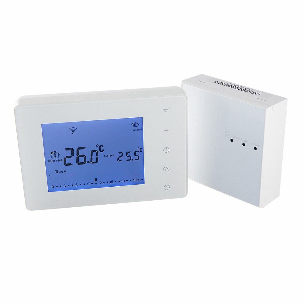 Термостат комнатный беспроводной VALTEC электронный + приемник сигнала / Хронотермостат для регулирования температуры отопления (приводы теплого пола/радиатора, котлы, насосы и др.), VT.AC707.0.0