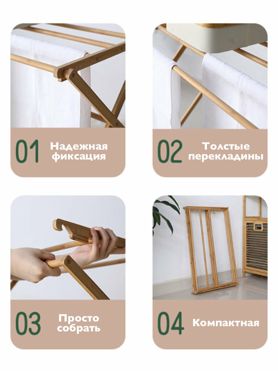 Сушилка для белья Напольная сушилка для белья UniStor Victoria, складная, 100% бамбуковый корпус, 73 см x 36 см x 107 см