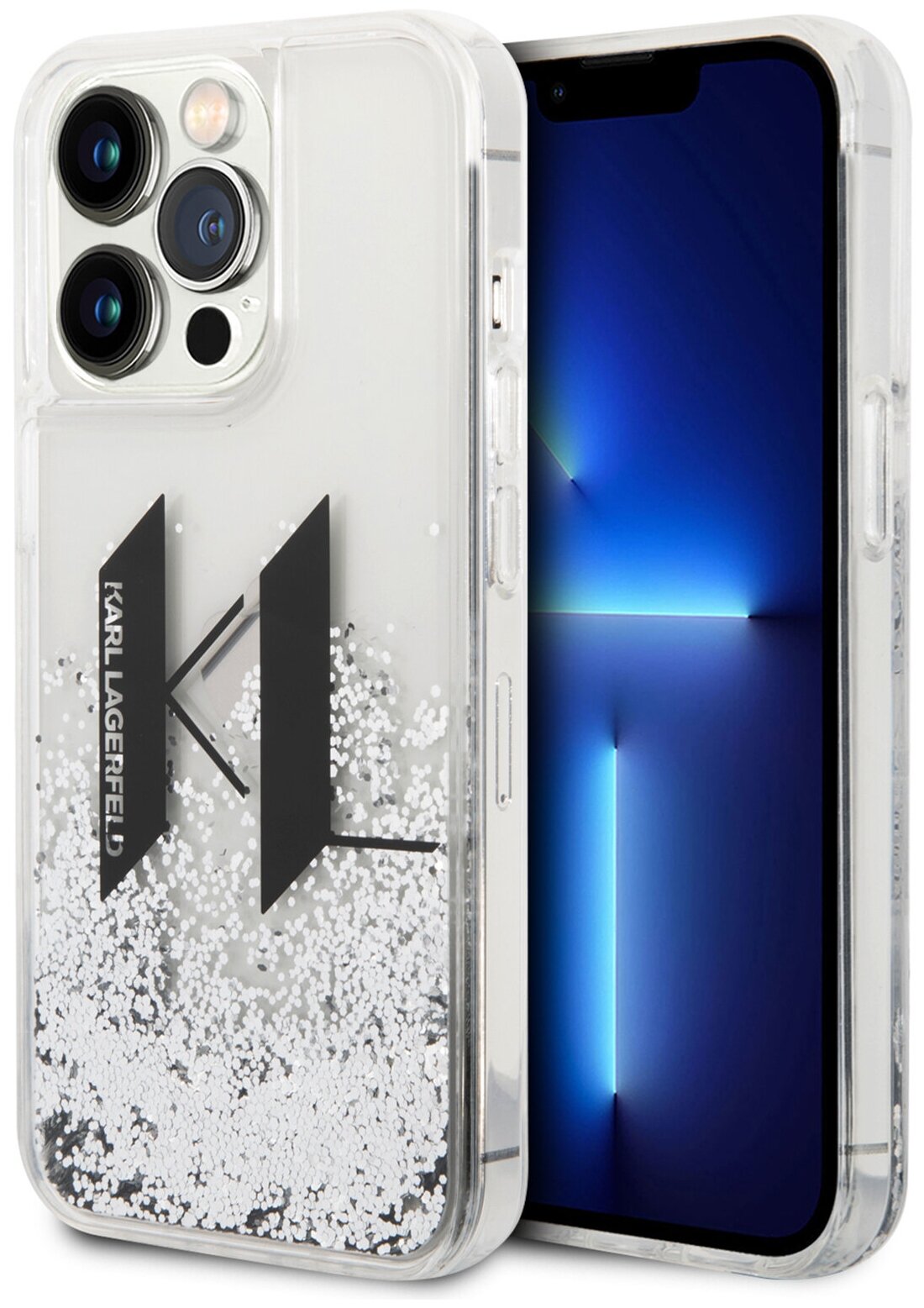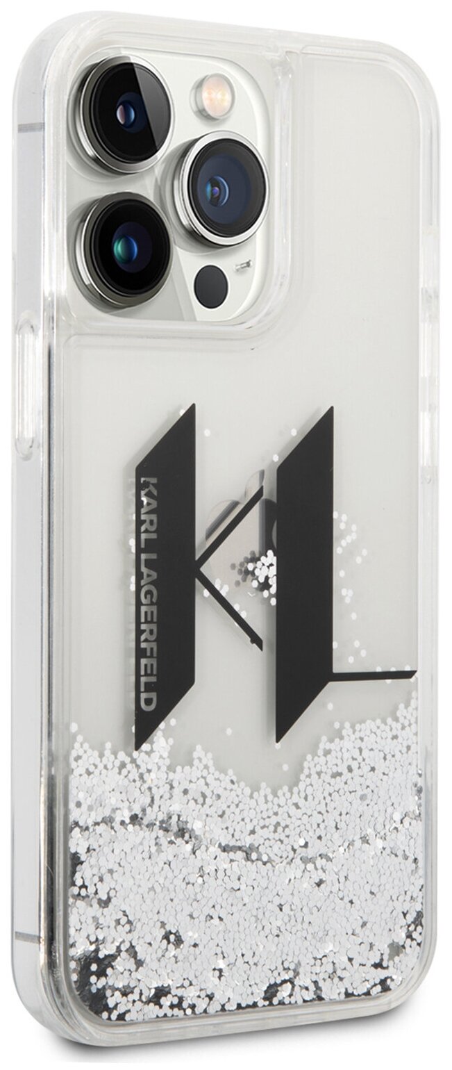 Чехлы для мобильных телефонов Lagerfeld для iPhone 14 Pro чехол Liquid glitter Big KL logo Hard Silver