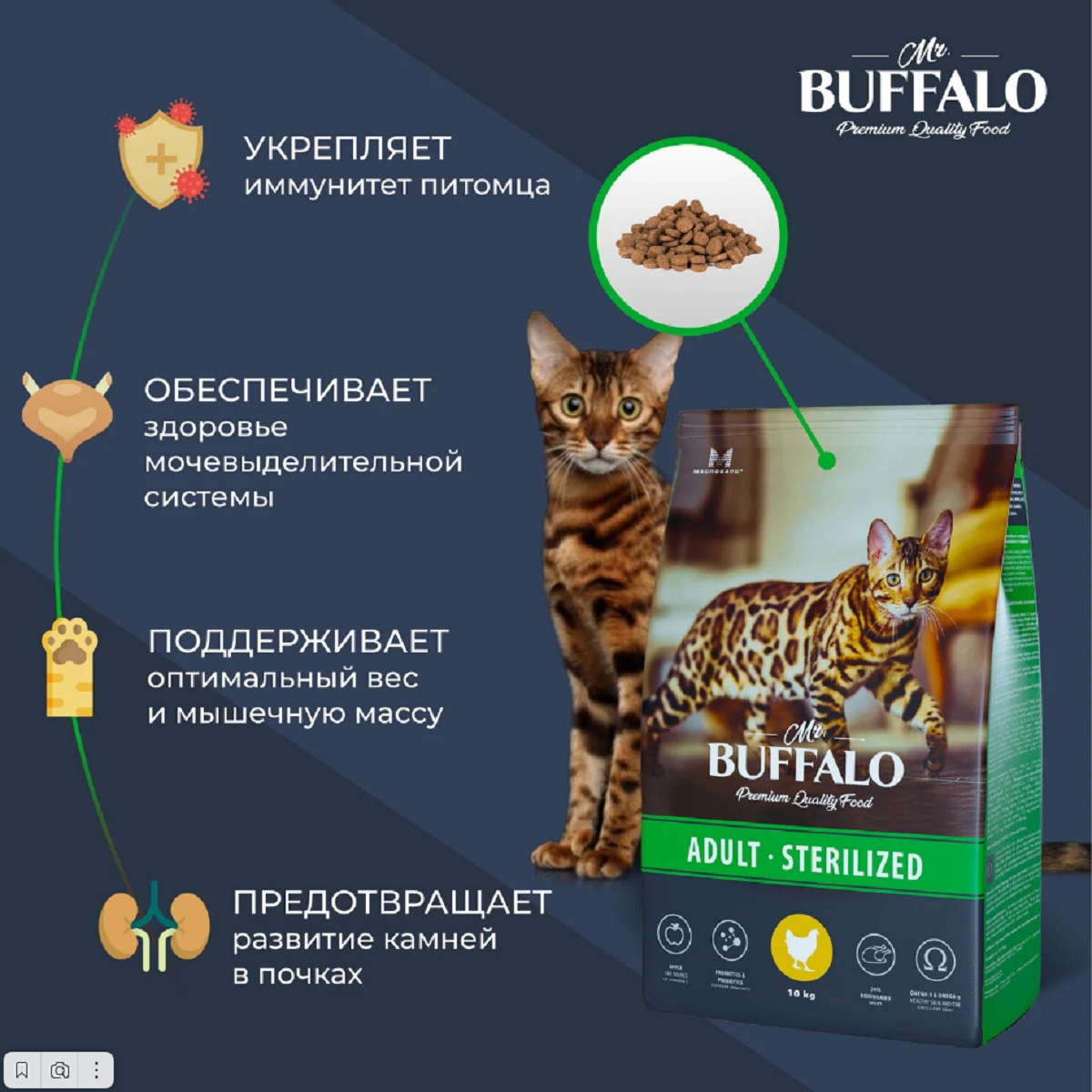 Корм для кошек Mr.Buffalo ADULT STERILIZED корм сухой для кошек Курица 10кг