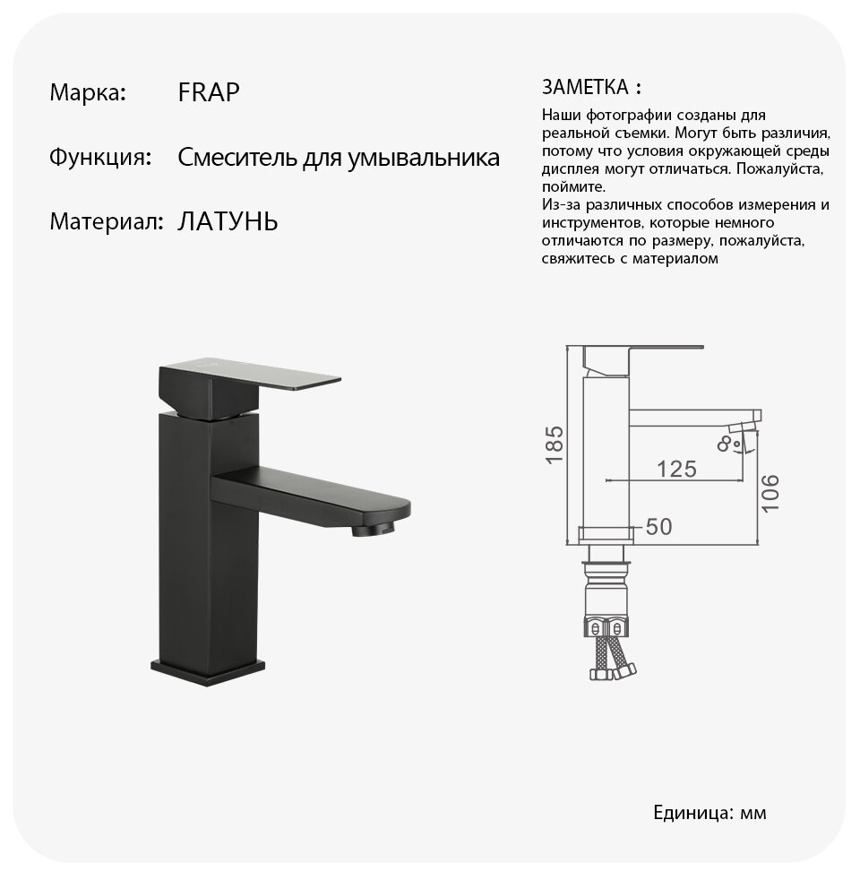 Смеситель для раковины Frap F10802-6, однорычажный, черный