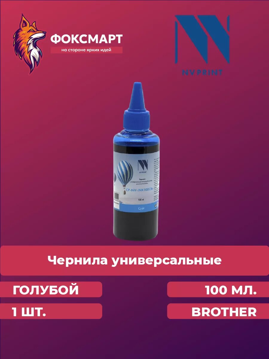 Чернила NV PRINT универсальные на водной основе для аппаратов Brother (100 ml) Cyan
