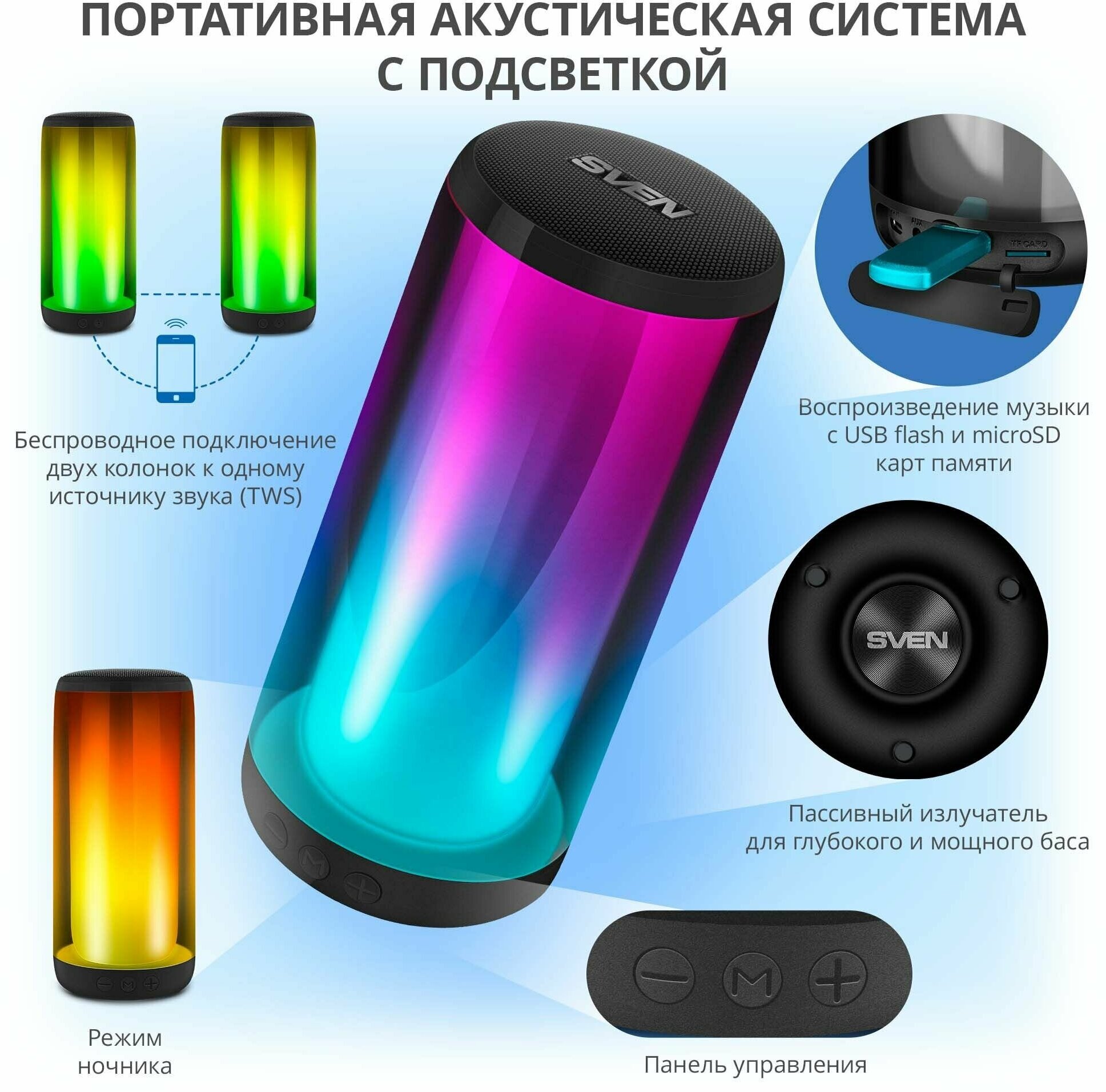 Портативная колонка Sven PS-260, 10 W, Bluetooth, FM, USB, microSD, подсветка, черный (SV-021337) 3 299 ₽ Подробнее