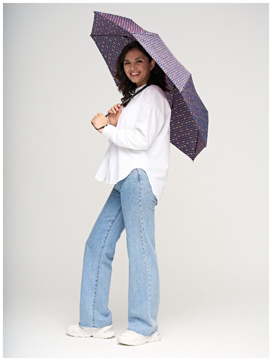 Зонт Henry Backer, автомат, 3 сложения, купол 105 см, 8 спиц, система «антиветер», чехол в комплекте, для женщин, мультиколор, фиолетовый