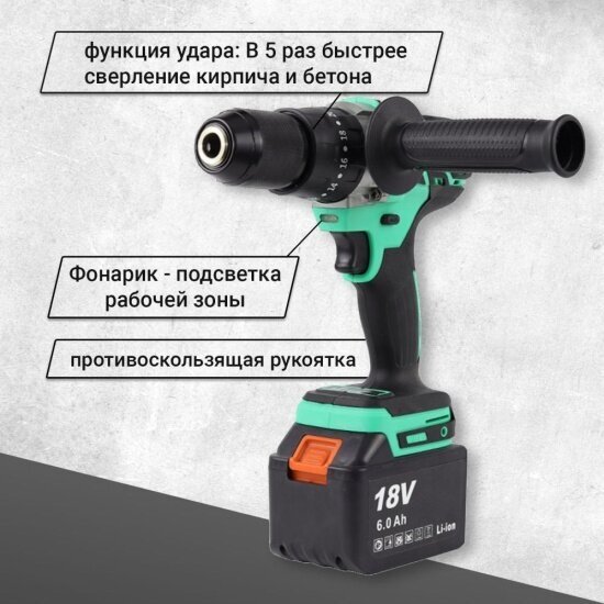 Дрель-шуруповерт аккумуляторная ударная Zitrek Green Impact 18V { 18В, Li-ion 2x6.0Ач }[063-4046]