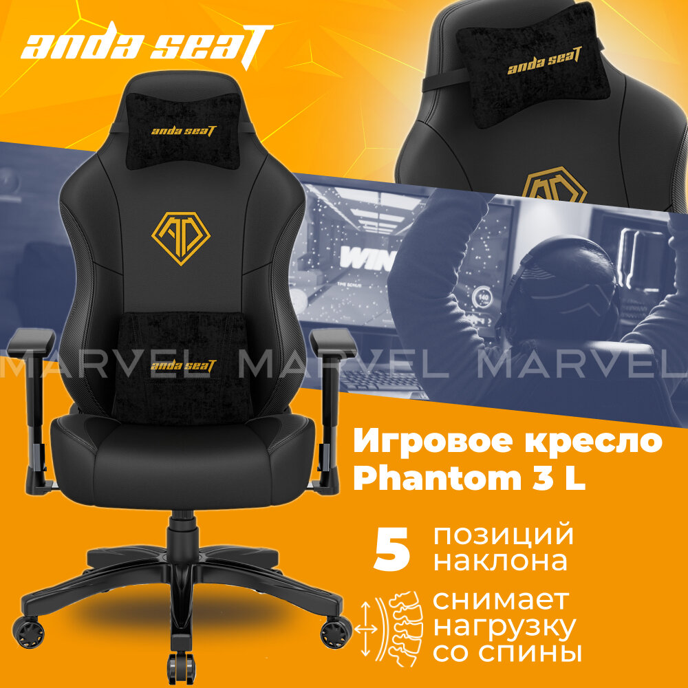 Компьютерное кресло Anda Seat Phantom 3 L игровое, обивка: искусственная кожа, черное