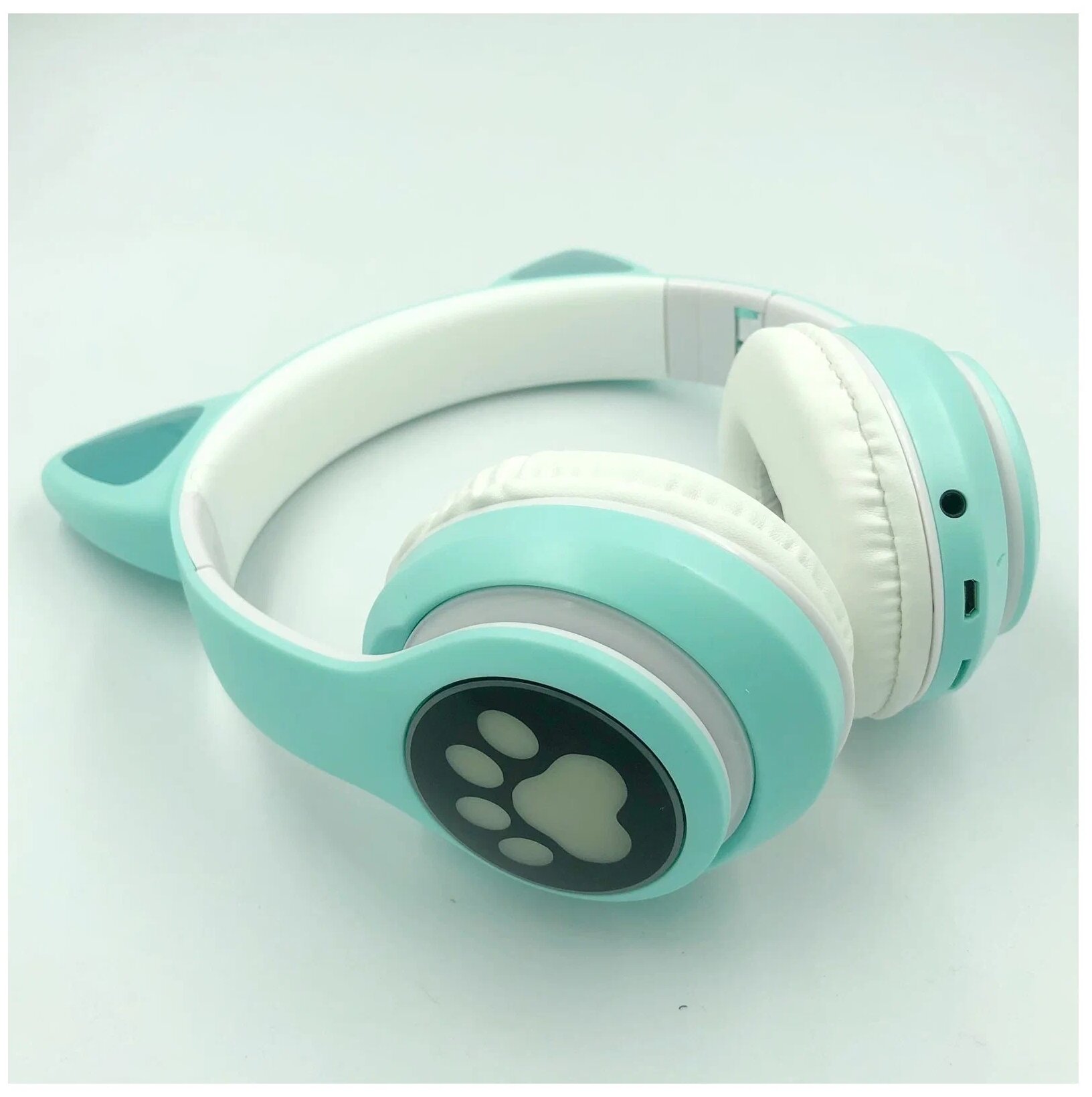 Наушники беспроводные детские с ушками / Светящиеся детские беспроводные наушники с ушками / Беспроводные наушники детские / Наушники с ушами мятные