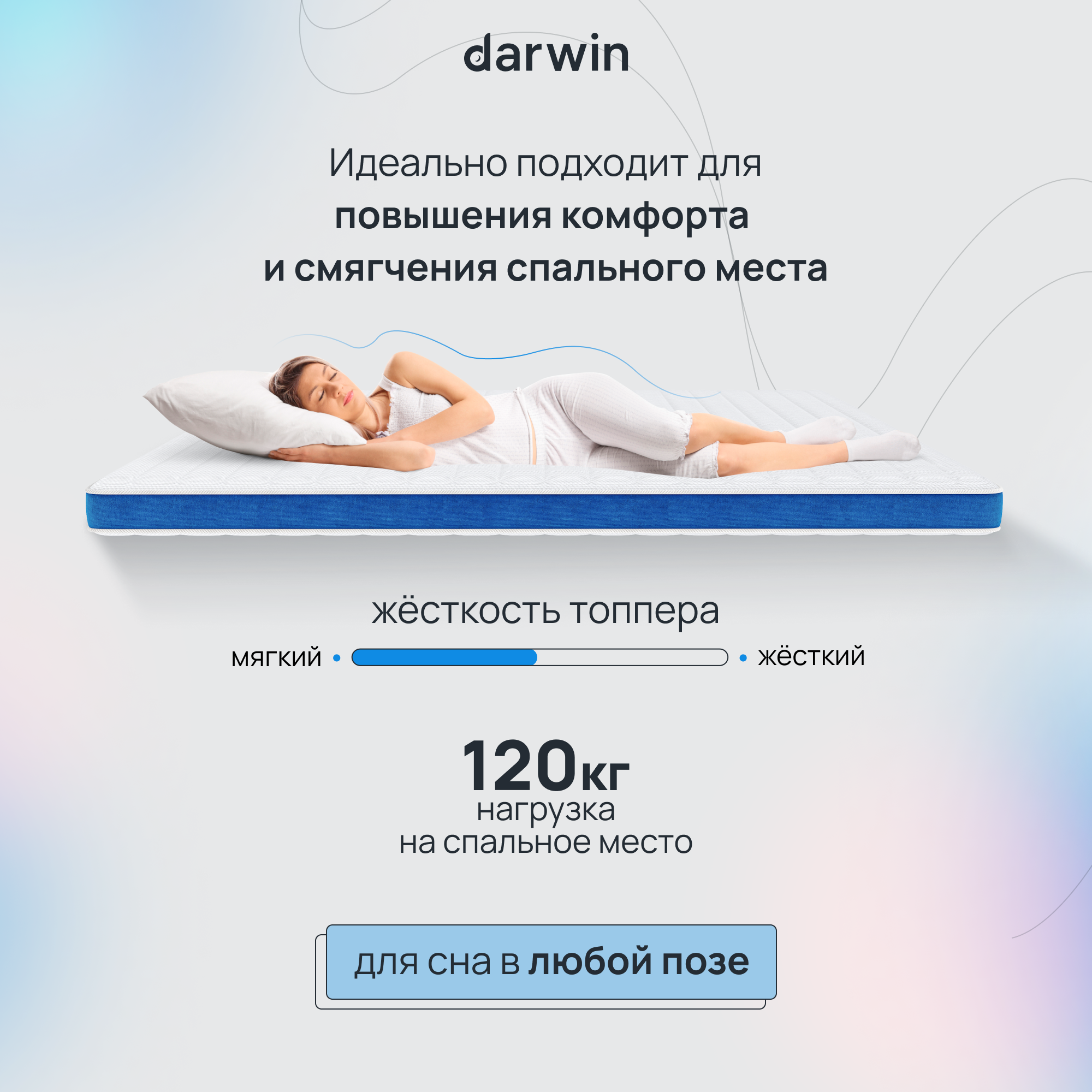 Матрас-топпер двухсторонний Darwin Breeze с эффектом памяти, анатомический, ортопедический, 160х190 см высота 8 см