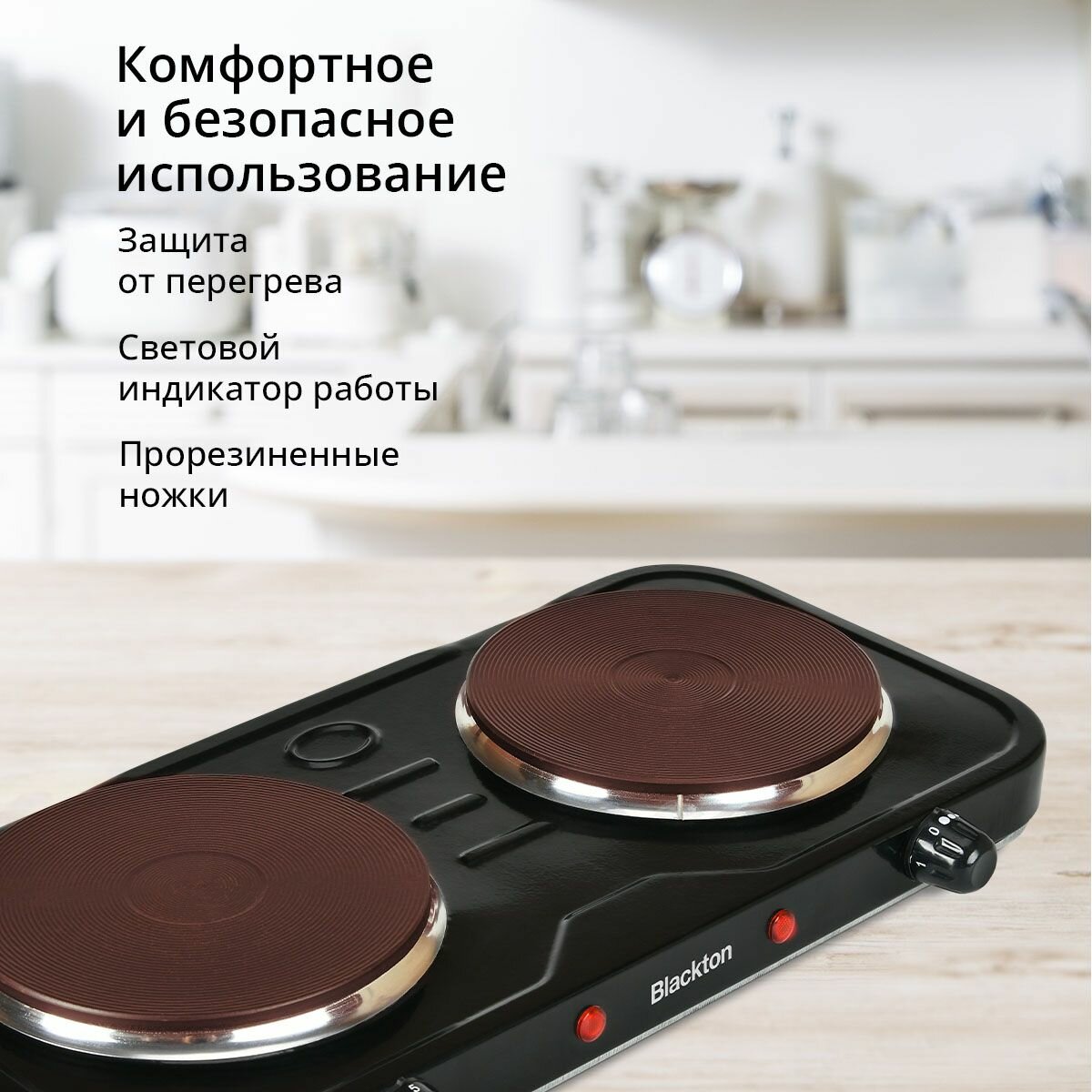Плита электрическая BLACKTON Bt HP218B 1000 Вт+1000 Вт, 2 комфорки, черный