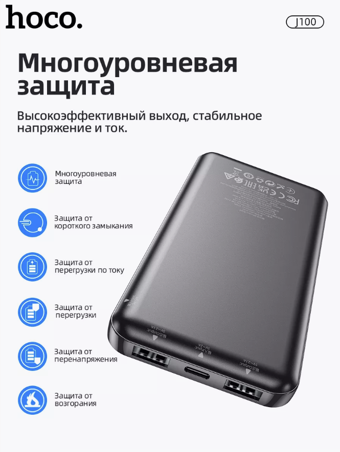 Внешний аккумулятор Hoco J100 10000mAh, черный