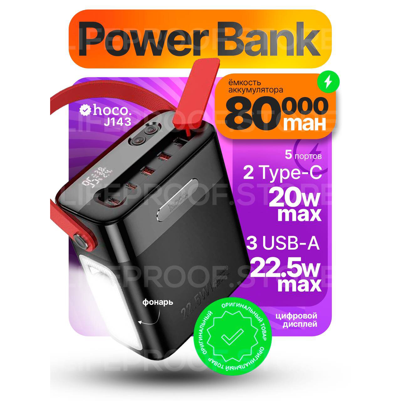 Powerbank Универсальный портативный аккумулятор Hoco J143 80000mAh 22.5W, 2 Type-C / 3 USB, цифровой дисплей, цвет Черный