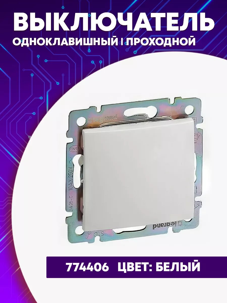 Выключатель "Legrand" Valena белый 1кл проходной 774406 без рамки