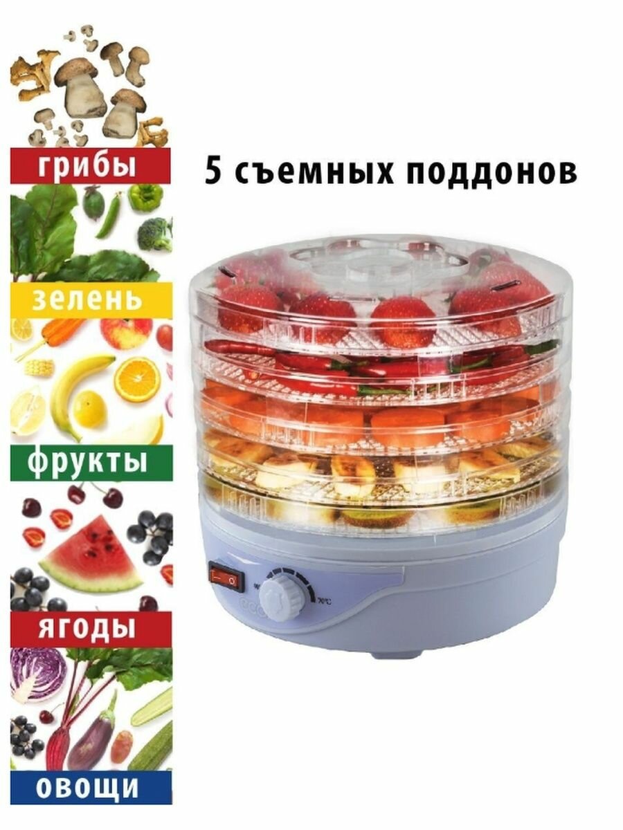 Сушилка для овощей, фруктов и мяса ECON ECO-3012FD, 5 поддонов, регулировка температуры от 40 до 70 градусов, 245 Вт
